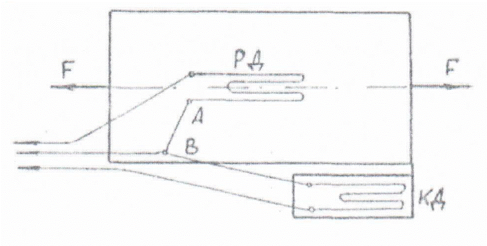 Схемы соединения рабочего (активного) РД и компенсационного КД тензометрических датчиков во внешний полумост и включения его выводов к измерительному прибору ИДЦ-1 показаны на примере образца, растягиваемого силами F (рисунок 2.1).